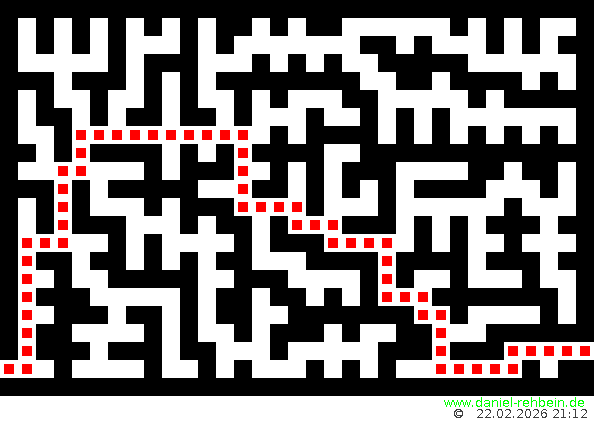 Hier sehen Sie mit roten Markierungen den Pfad durch den Irrgarten, also